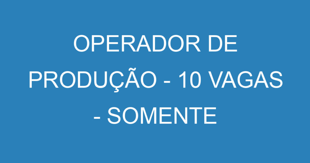 Emprego de OPERADOR DE PRODUÇÃO – 10 VAGAS – SOMENTE JACAREI em Jacarei