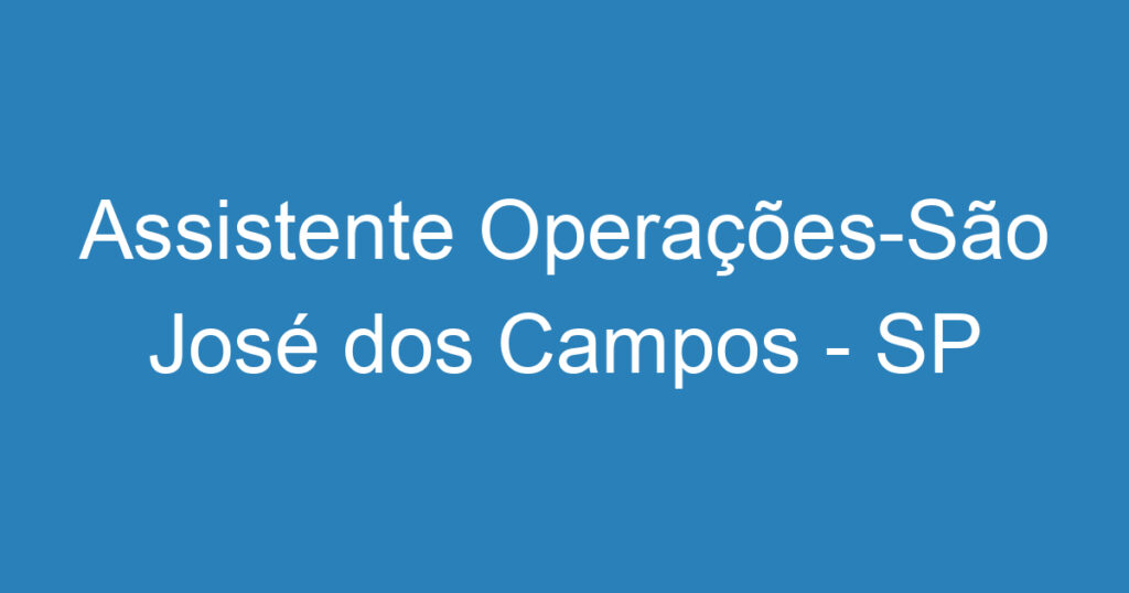Emprego de Assistente Operações-São José dos Campos – SP em São José dos Campos