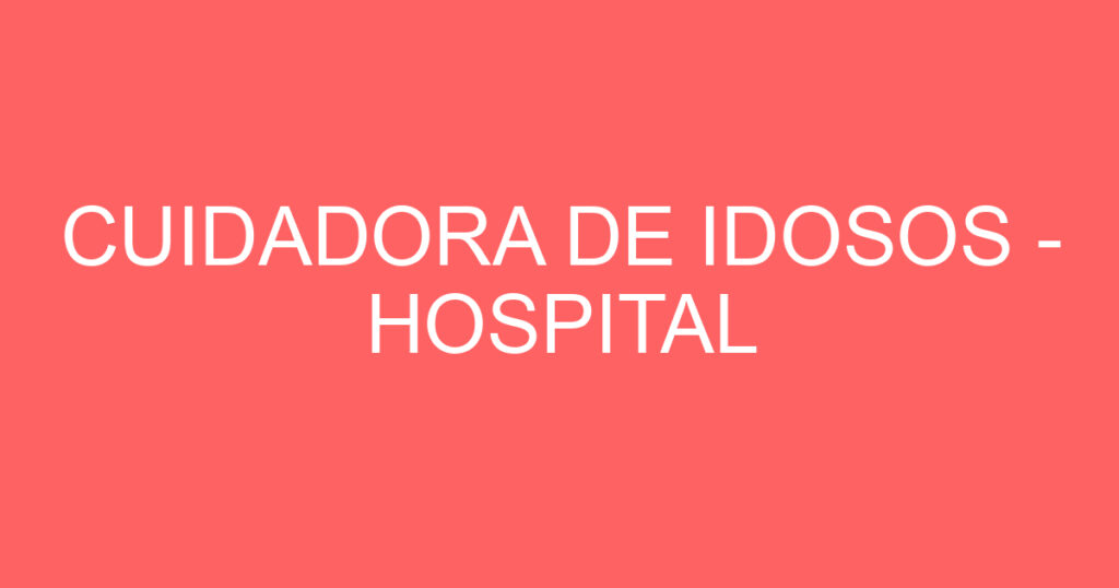 Emprego de CUIDADORA DE IDOSOS – HOSPITAL em São José dos Campos