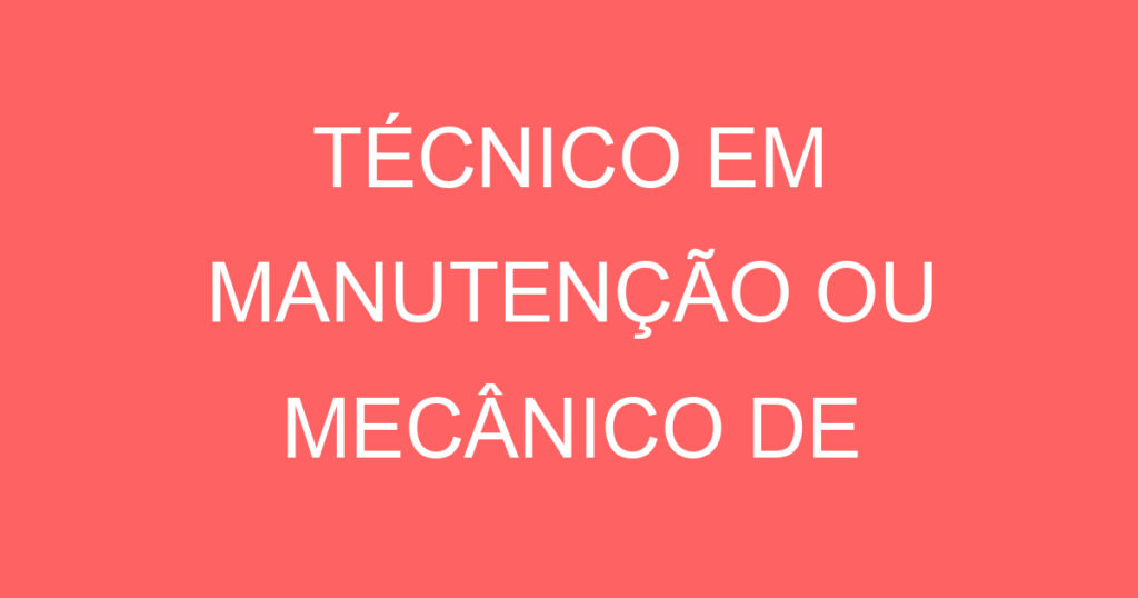 Emprego de TÉCNICO EM MANUTENÇÃO OU MECÂNICO DE MANUTENÇÃO – VOLTADO A SISTEMAS DE COMBATE A INCÊNDIO em São José dos Campos